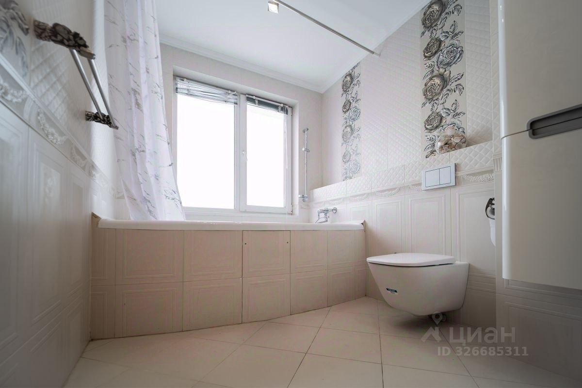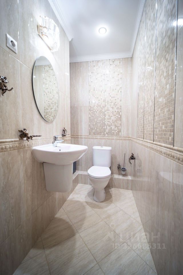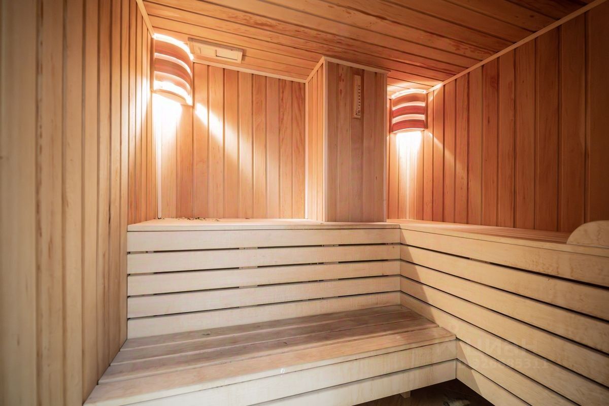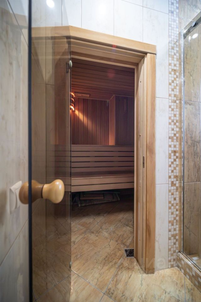 Оба санузла облицованы керамической плиткой, в одном из санузлов установлена небольшая ванная с видовым окном ,система инсталляции, также рядом отдельная душевая и сауна , в втором санузле система инсталляции, раковина.
