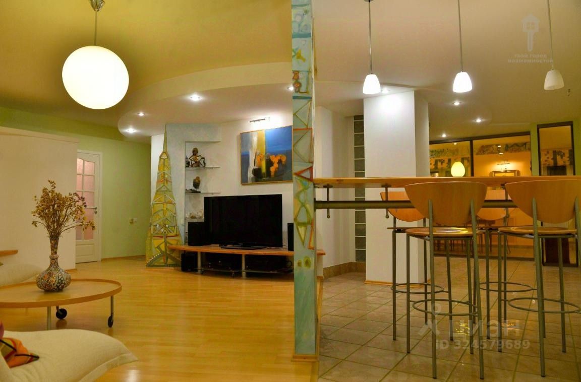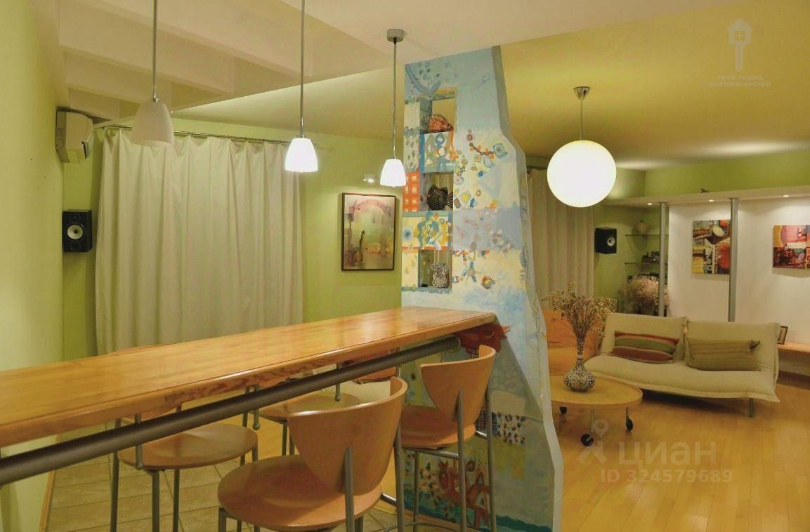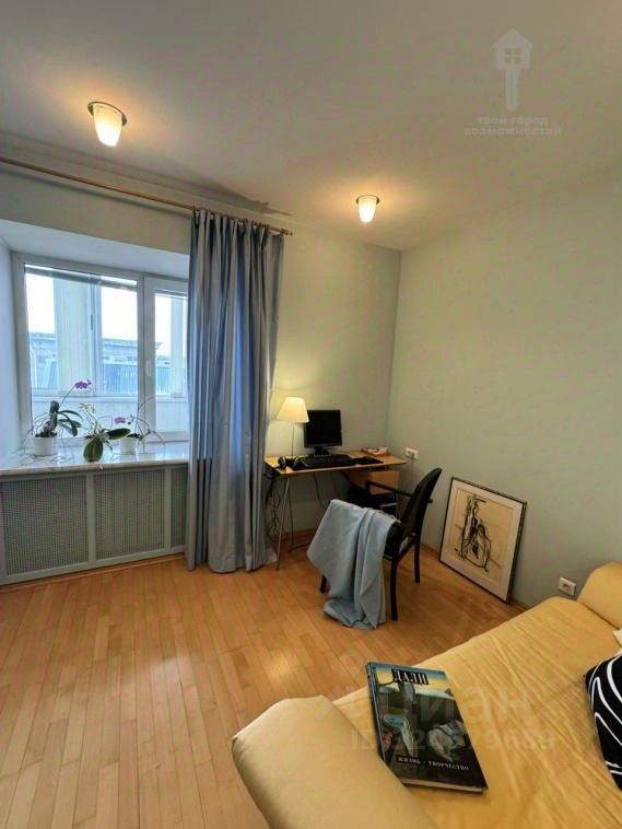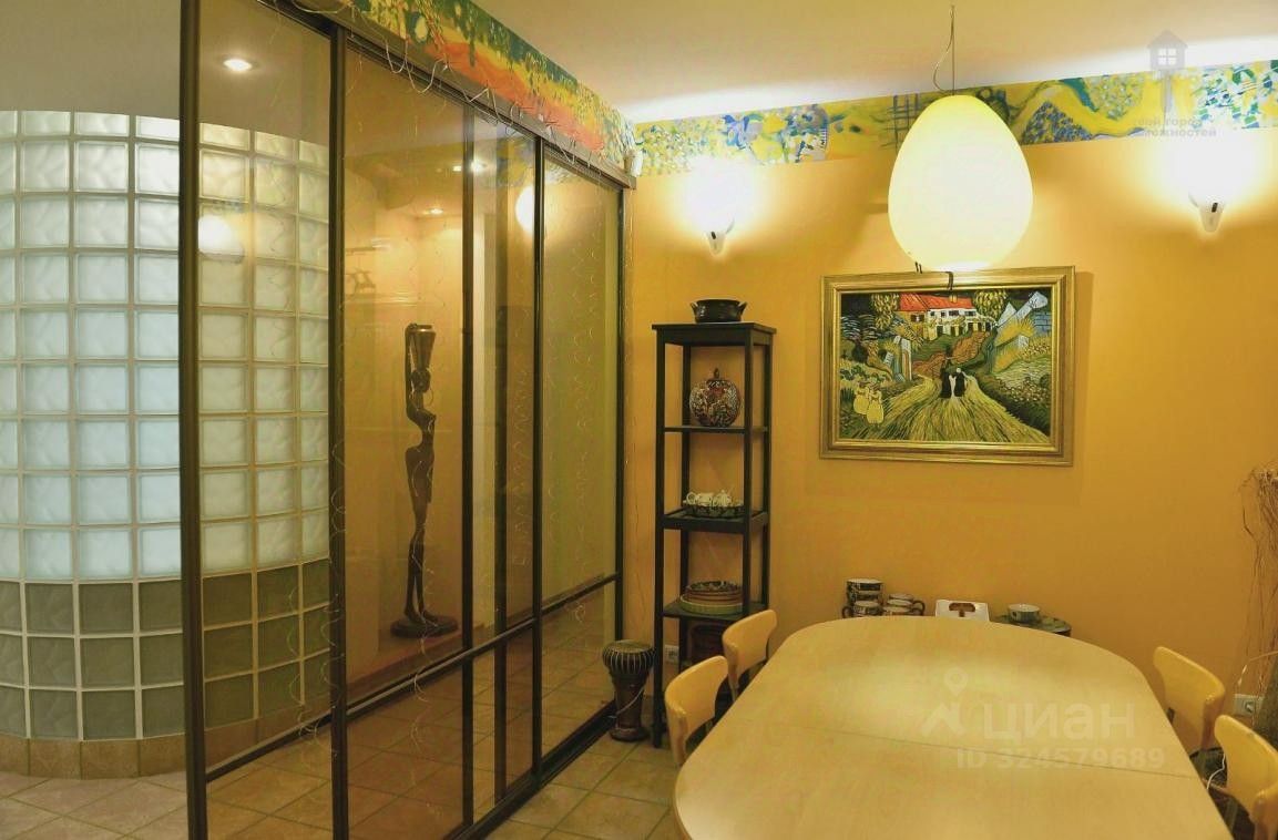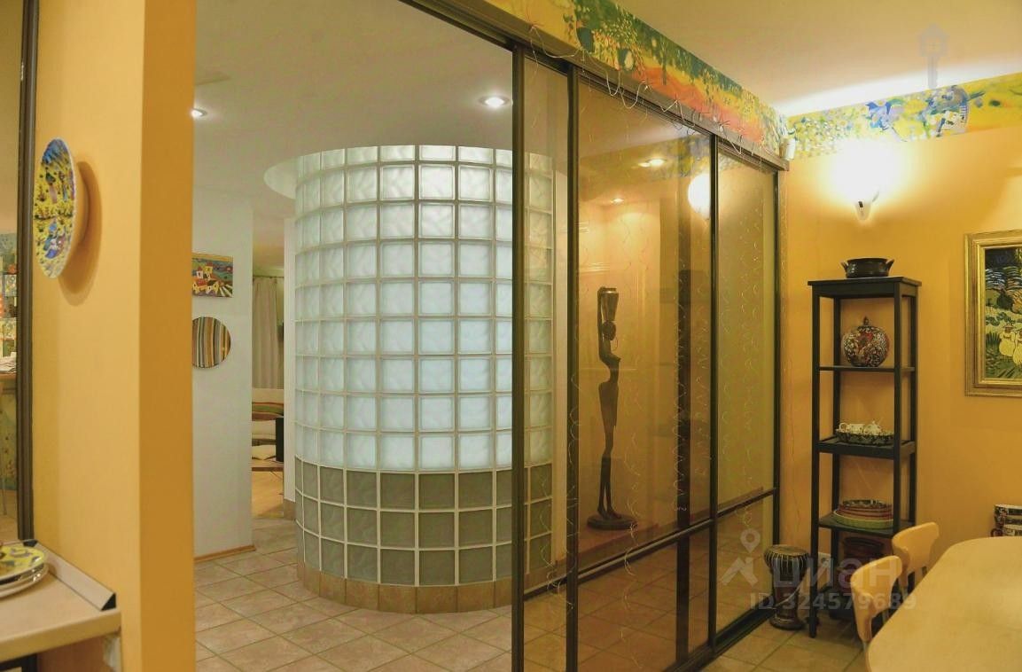 Две спальни, кабинет и просторная гостиная, кухня отделена стеклянной перегородкой.