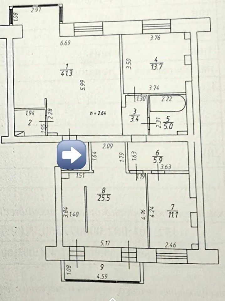 -три изолированные комнаты (25,5, 13,7 и 11,1 м2)