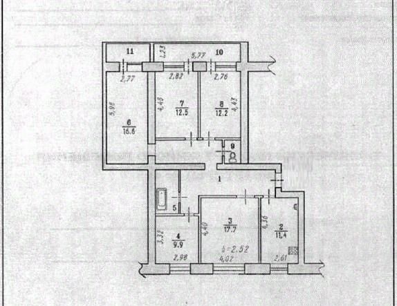 Площадь комнат: 17,7 кв. м, 16,6 кв. м, 12,5 кв. м, 12,2 кв. м, 9,9 кв. м,