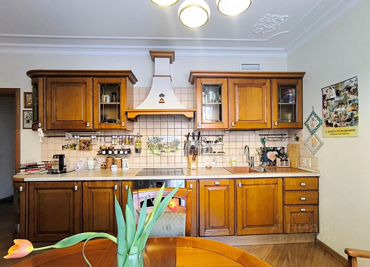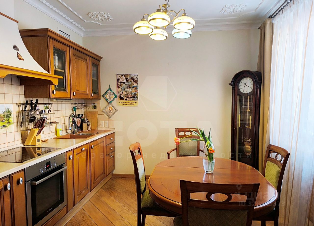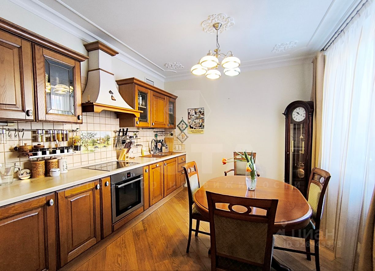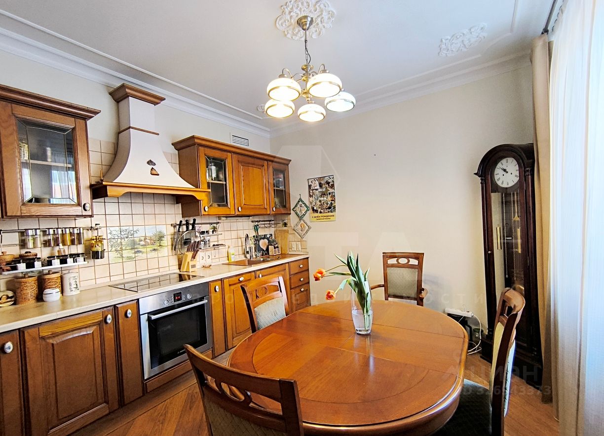В квартире выполнен ремонт в классическом стиле. На стенах нанесена венецианская штукатурка, ламинат - дуб, регулируемое отопление, гранитные подоконники с подогревом. Качественные окна ПВХ, витражи - кашированный дуб. В двух комнатах фрески на стенах.