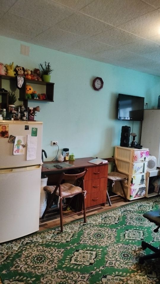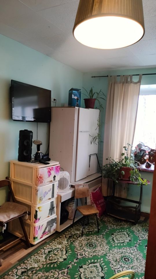 Просторная и светлая комната.Окно ПВХ, вода в комнате, мебель остается,с\у и душевая на 4 комнаты. Секция закрывается. Соседи порядочные, в секции чисто. Один взрослый собственник.
