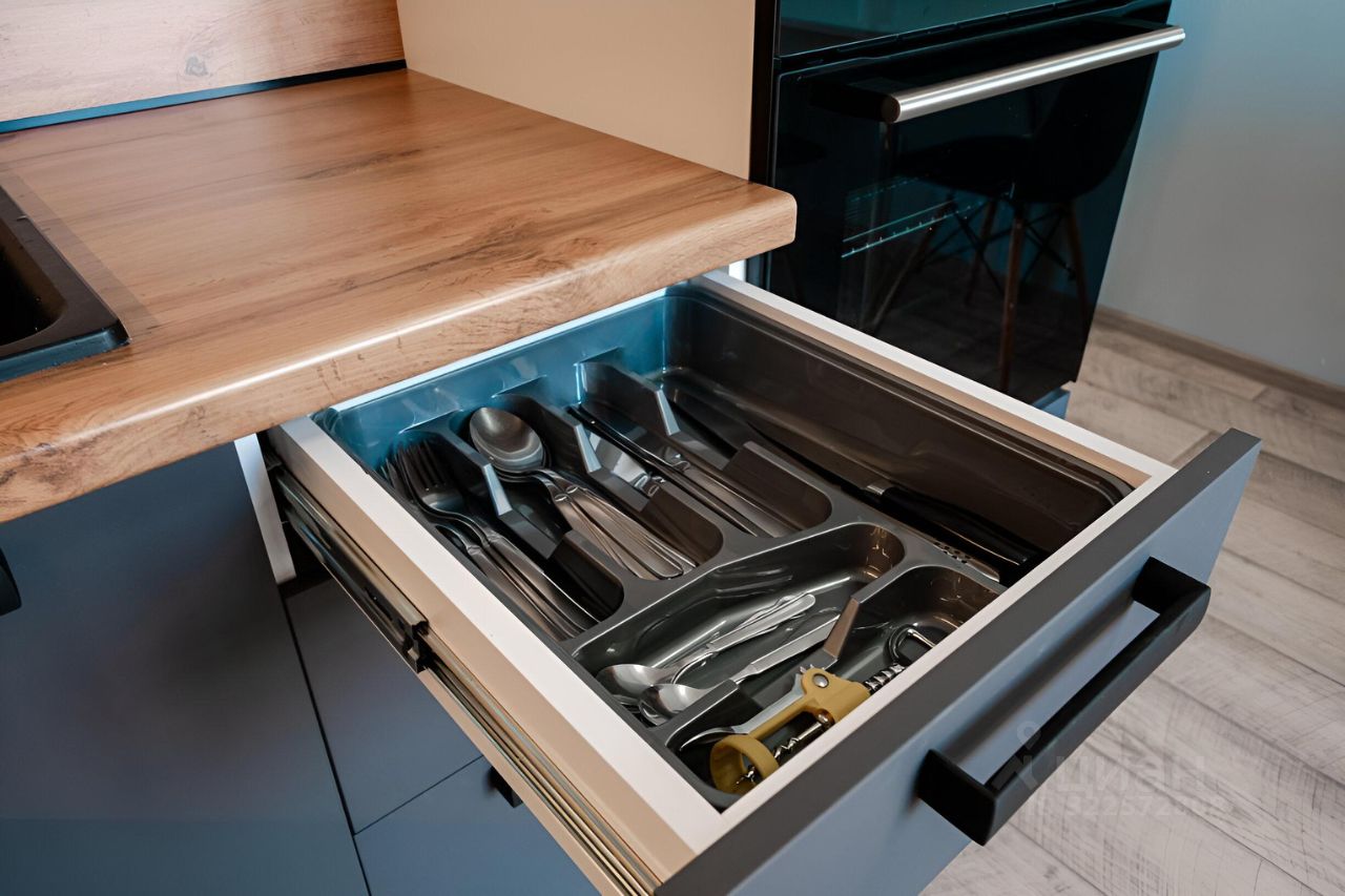 - Современная кухня с посудой и необходимыми принадлежностями