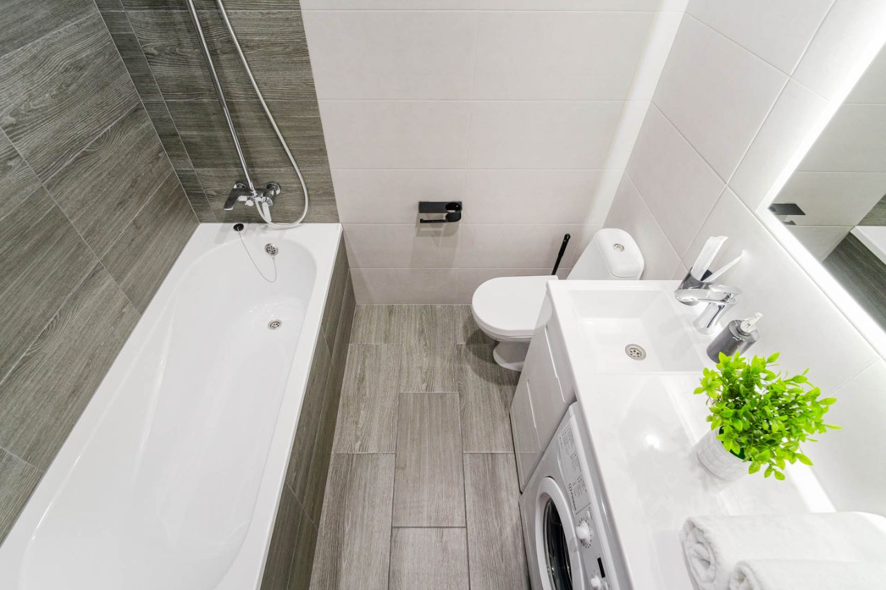 Полный набор бытовой техники: посудомоечная машина, кондиционер, стиральная машинка, чайник, микроволновка, фен, утюг, гладильная доска, бойлер