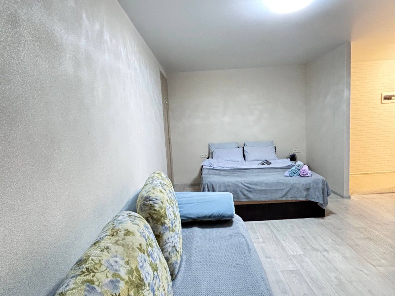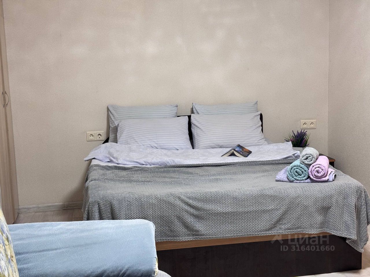 В квартире есть все необходимое для комфортного проживания! Качественное постельное белье и полотенца, средства для гигиены, посуда и кухонная утварь. Плита, чайник, СВЧ-печь, утюг, гладильная доска, фен, Wi-Fi, Телевизор.
