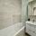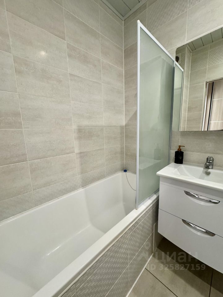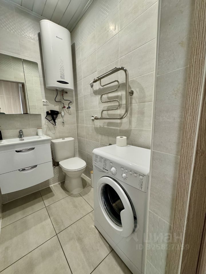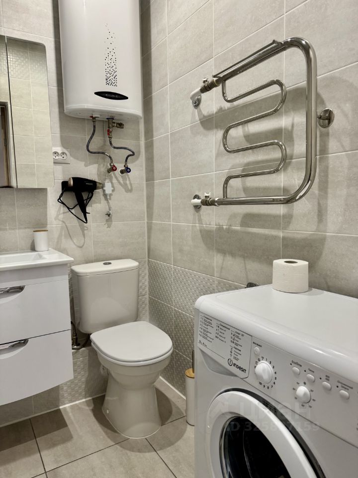 Ванная комната с ванной, гигиенические принадлежности (шампунь, гель для душа, зубная щетка с пастой),стиральная машинка.