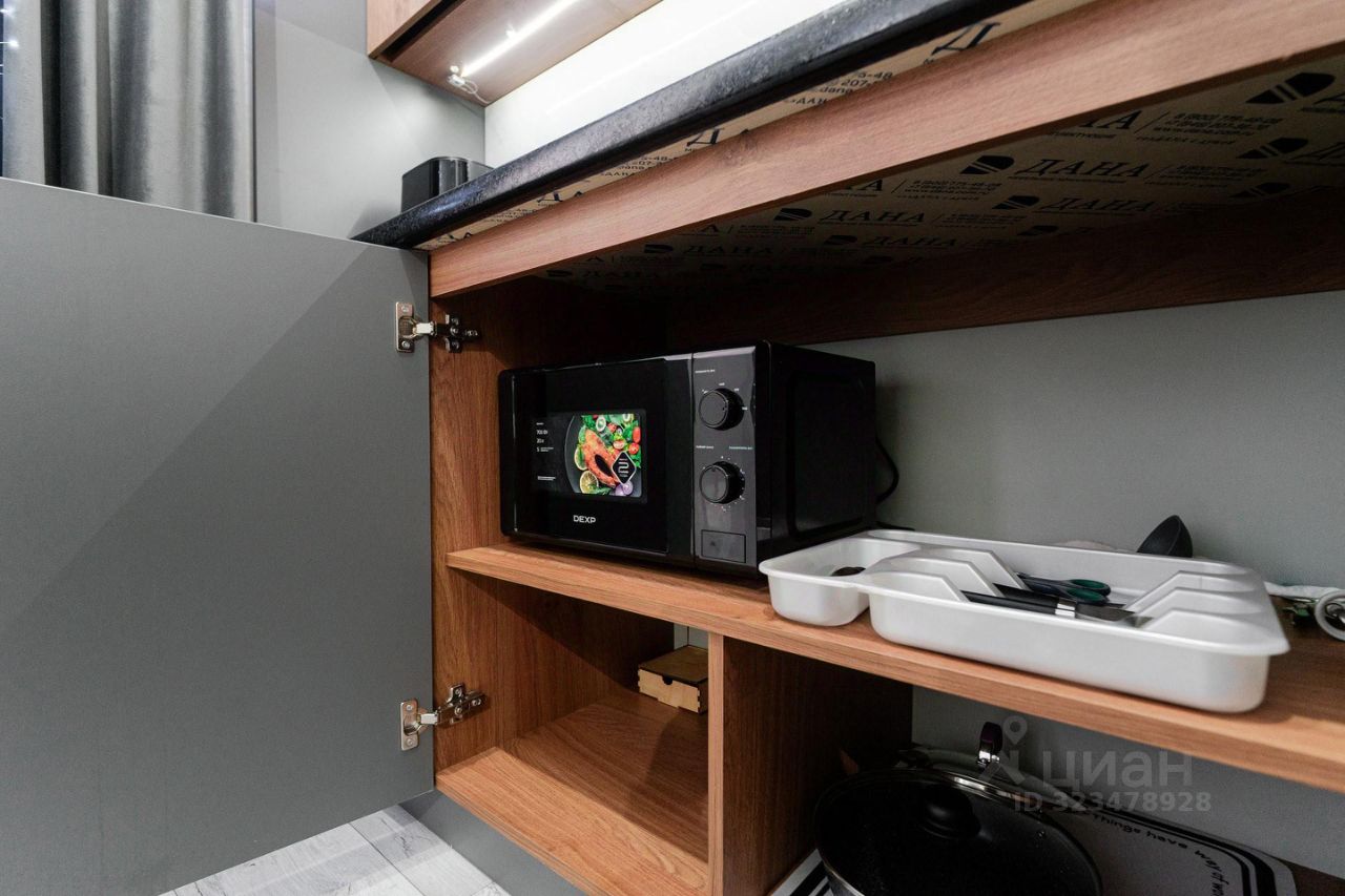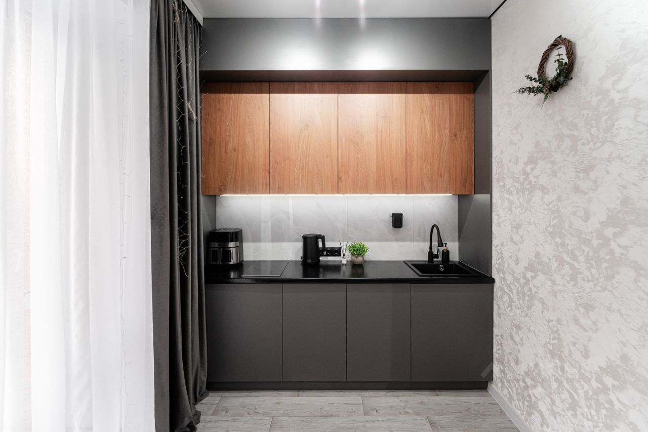- Современная кухня с посудой и необходимыми принадлежностями