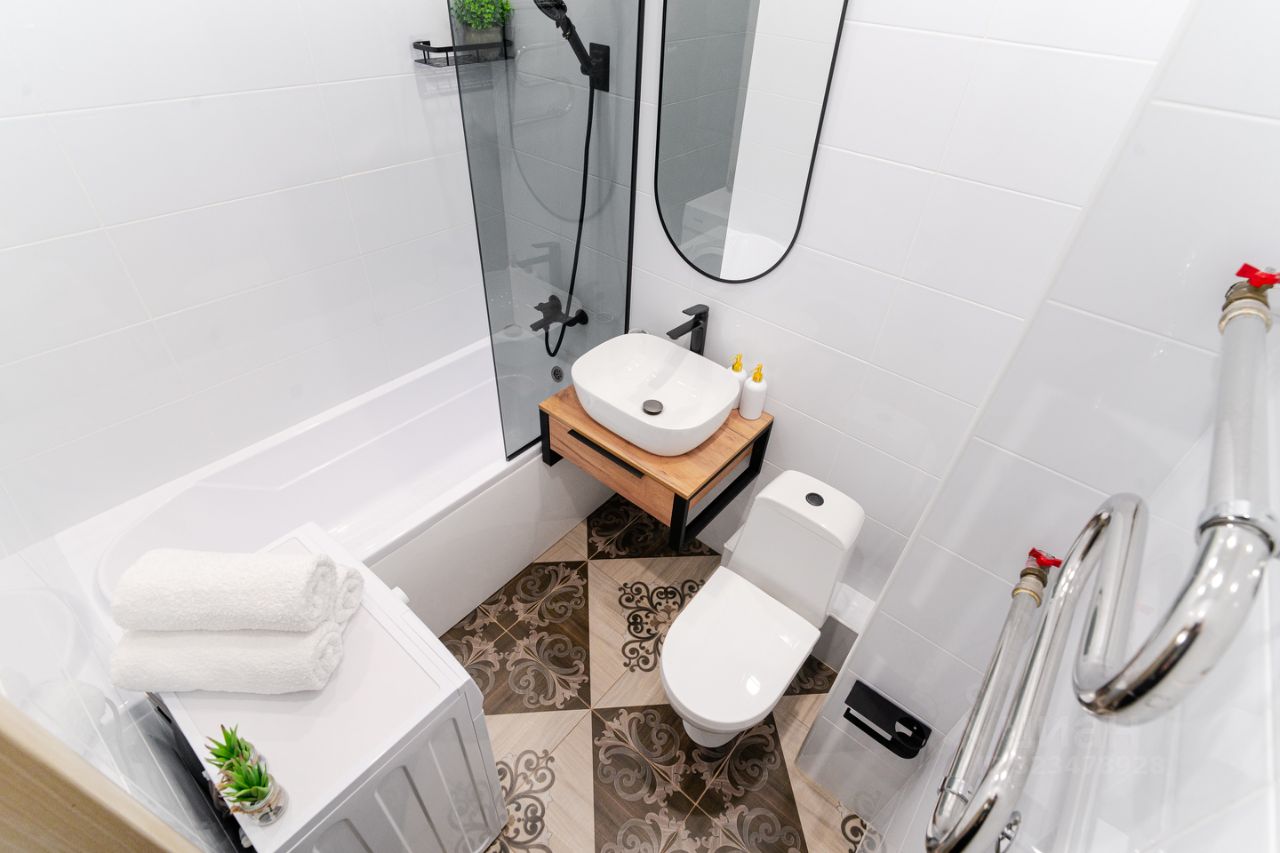 - Полный набор бытовой техники: стиральная машинка, чайник, микроволновка, фен, утюг, гладильная доска.