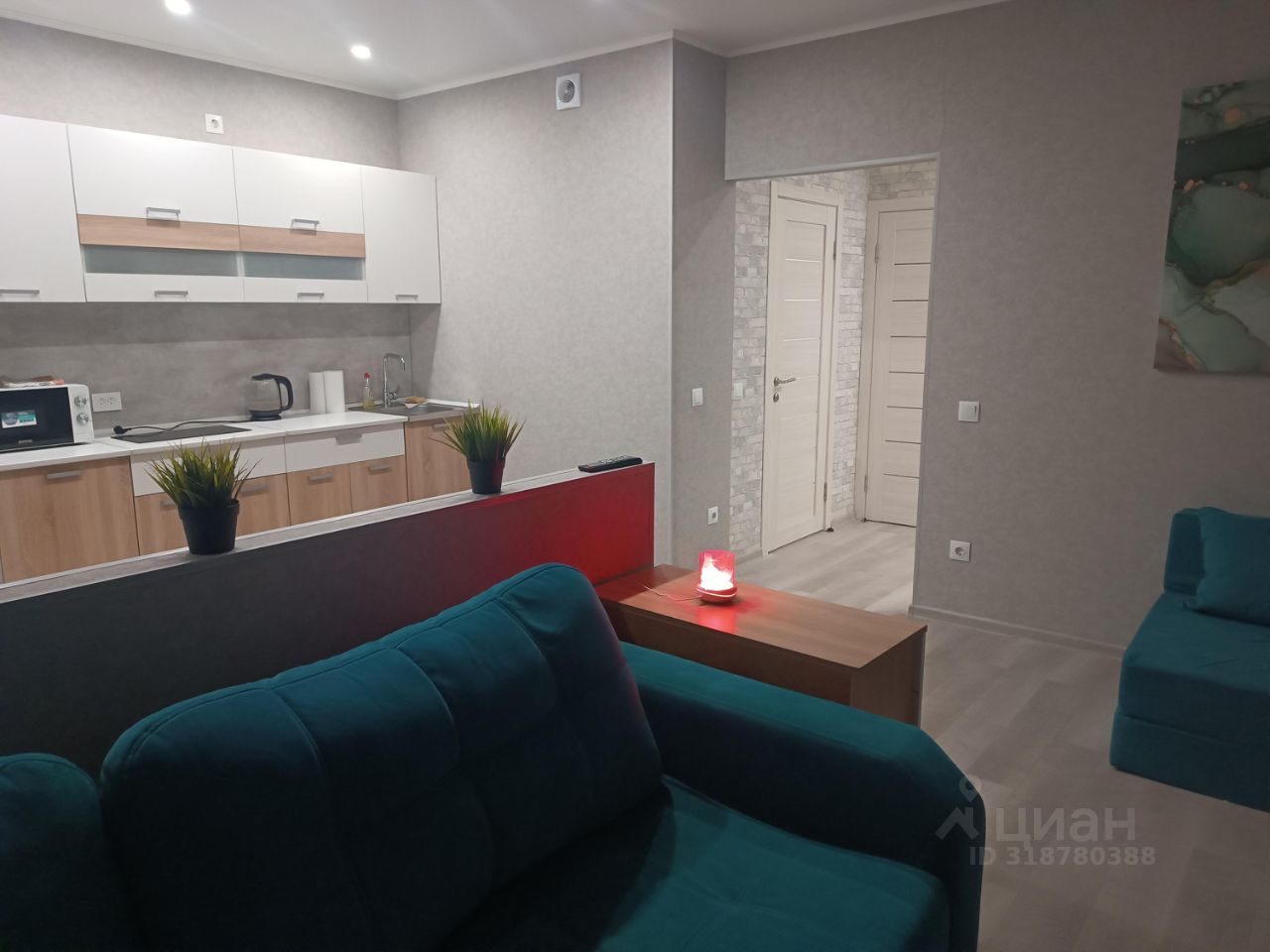 (ТВ, диван, кондиционер, кухня, холод-к, СВЧ, чайник, утюг, фен, стир. машина, посуда, интернет).