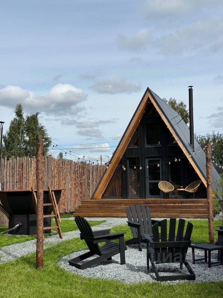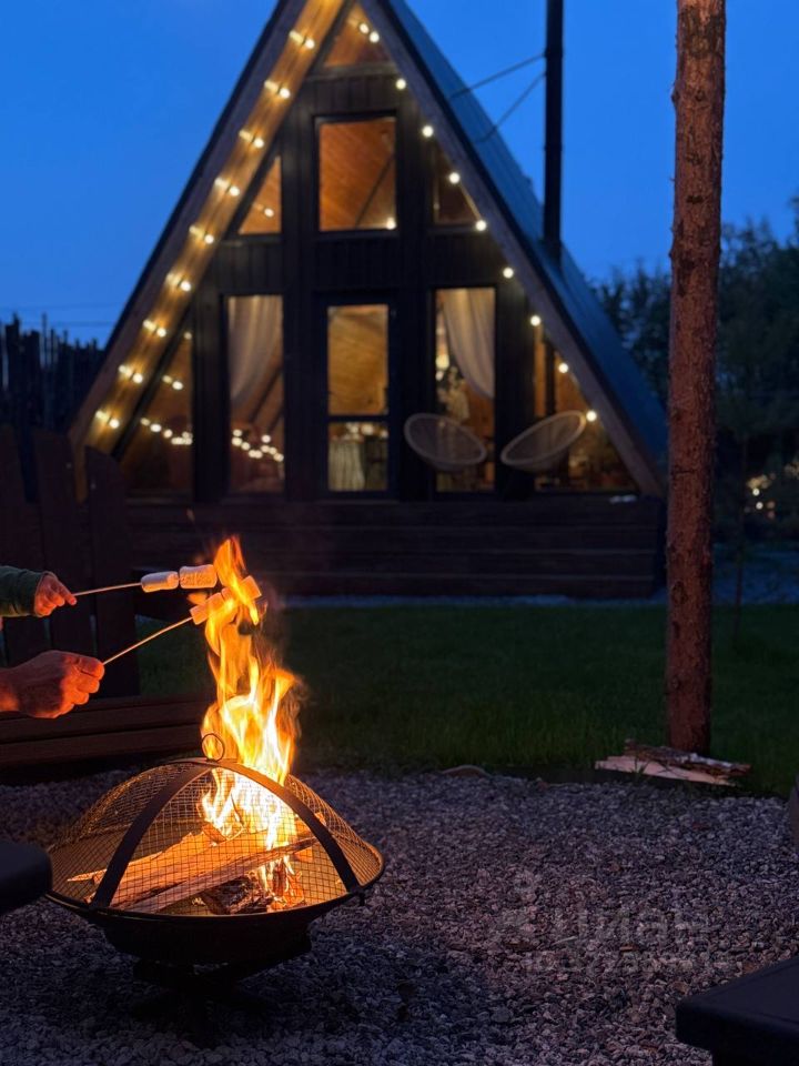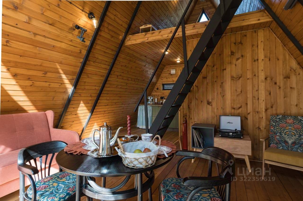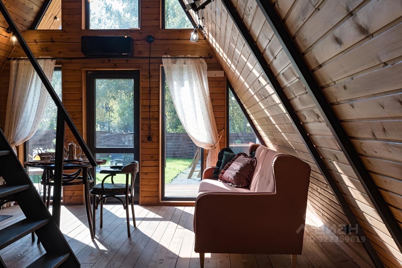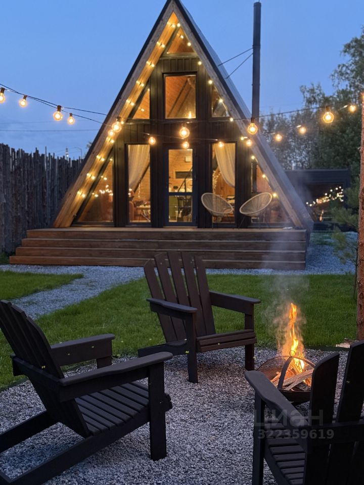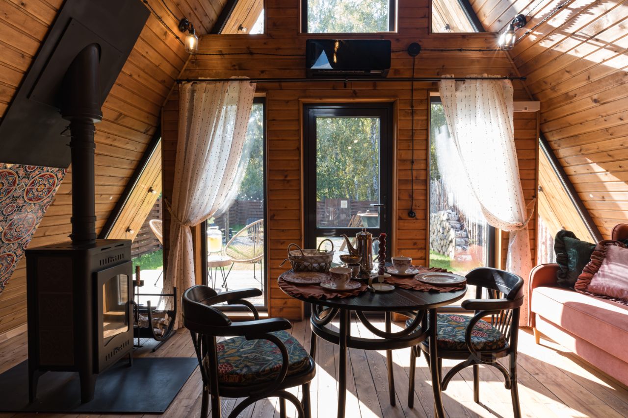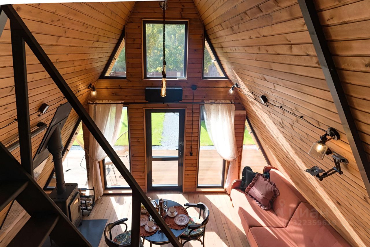 Уютный A-фрейм дом с камином.