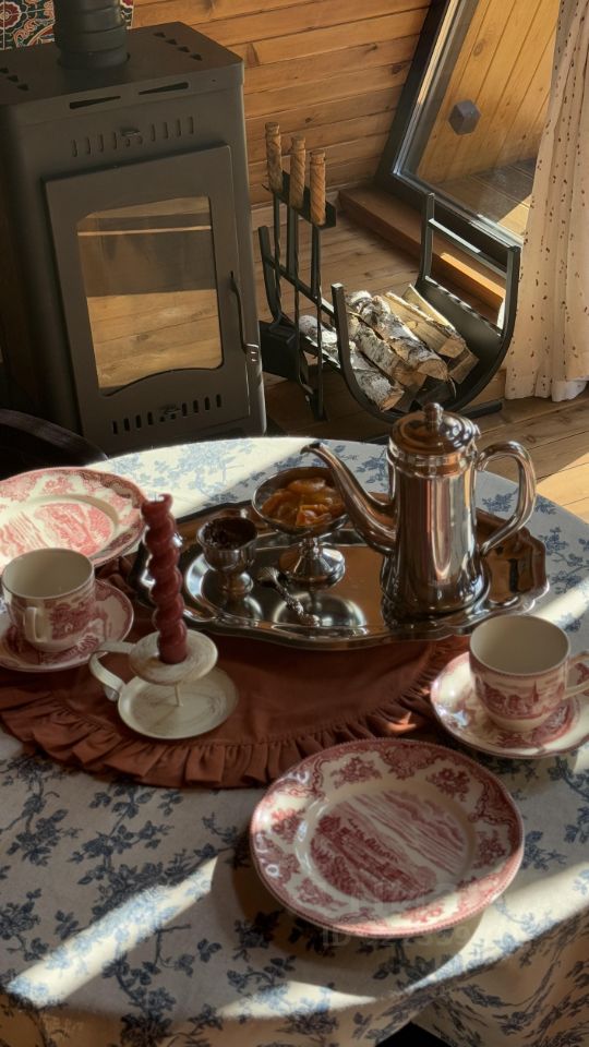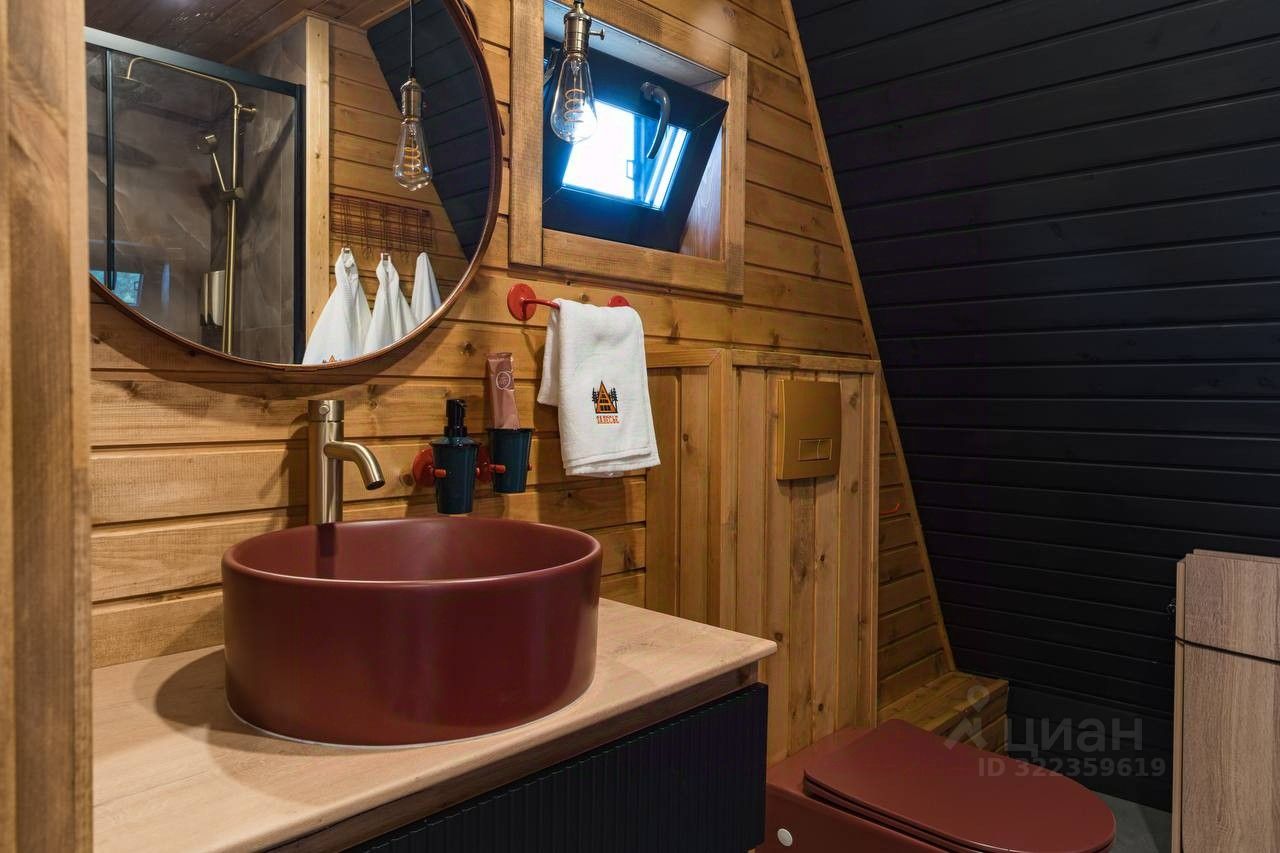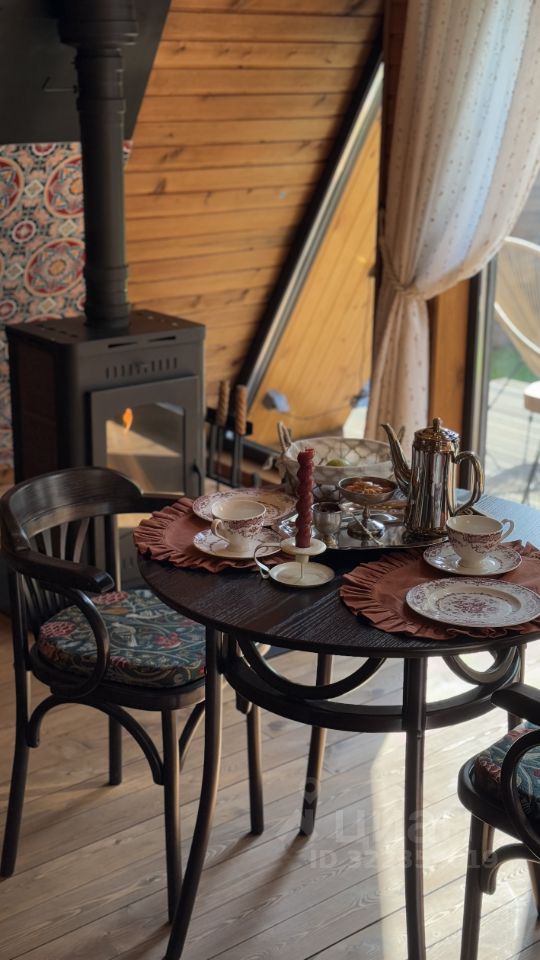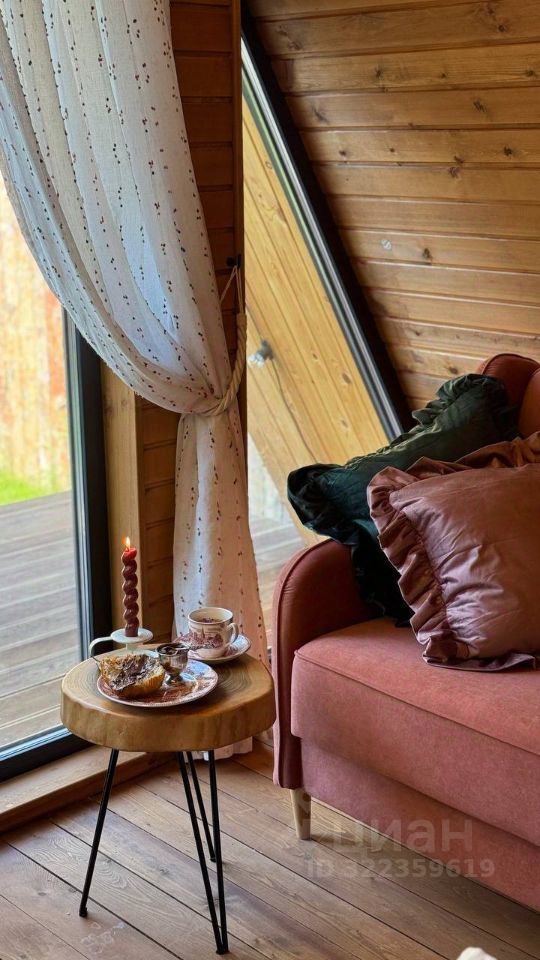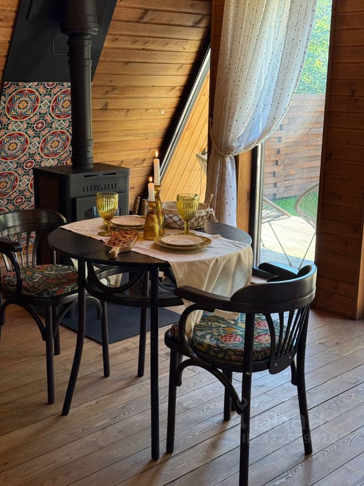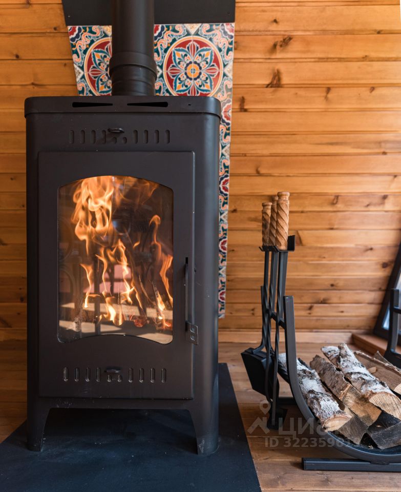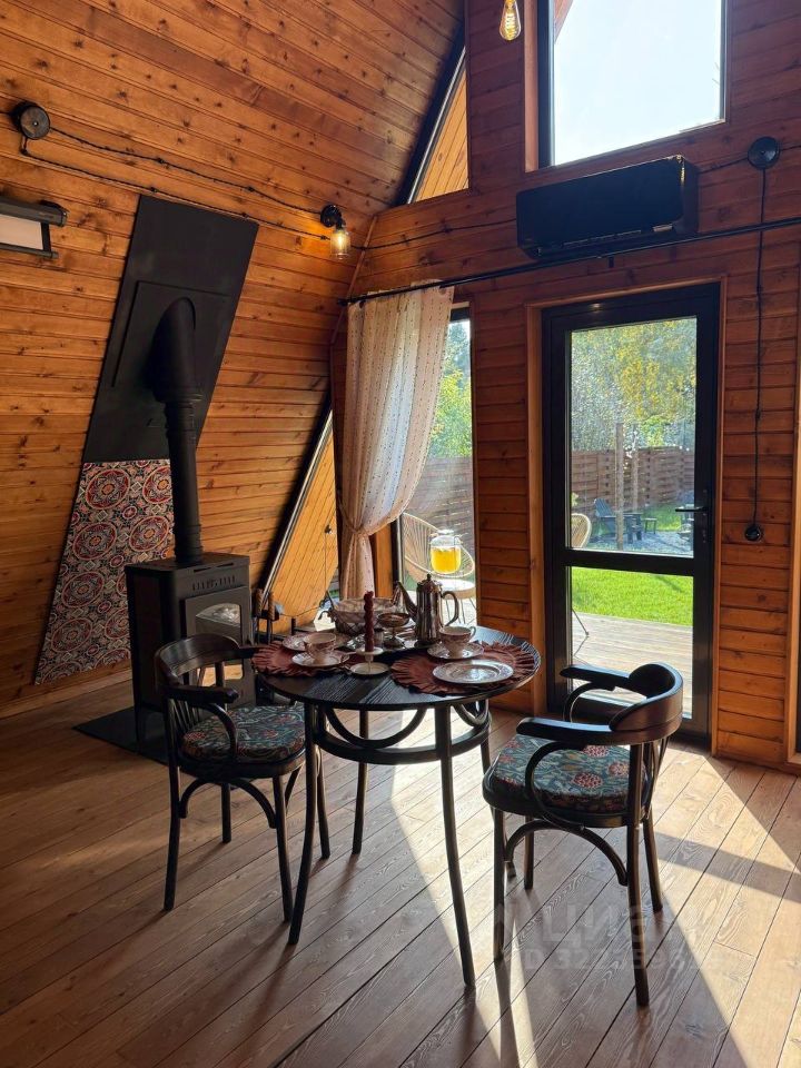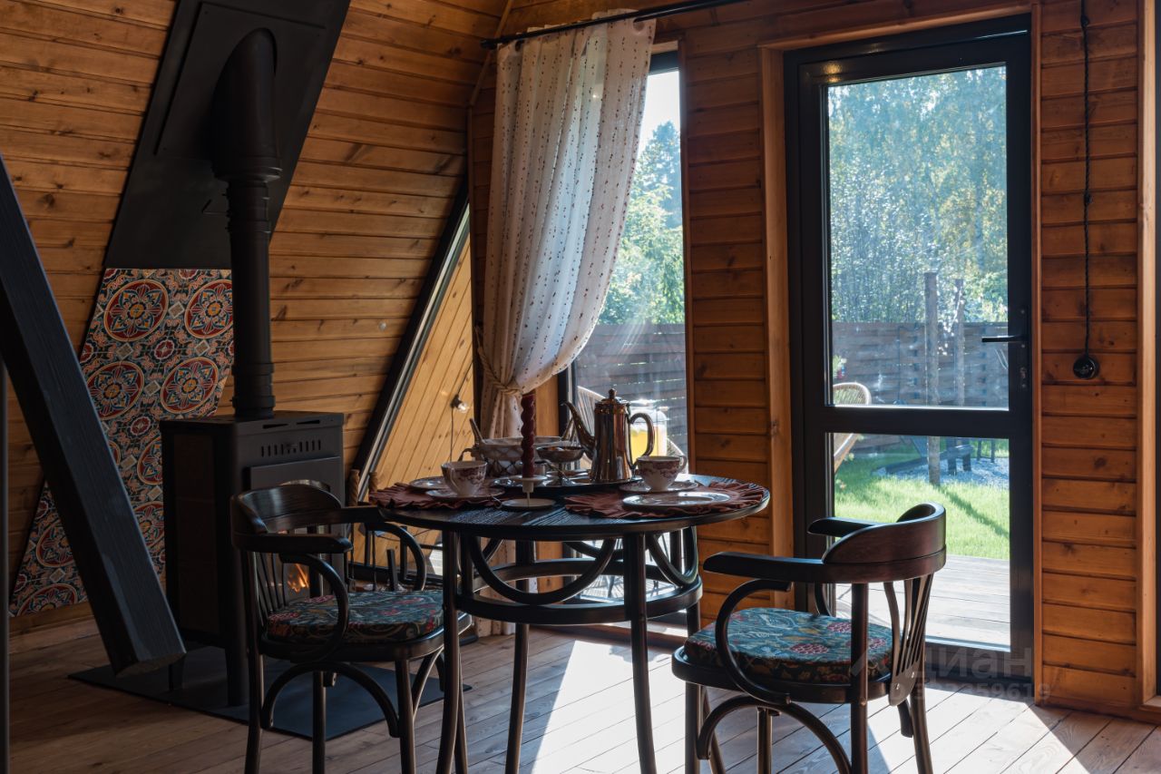 Уютный A-фрейм дом с камином.