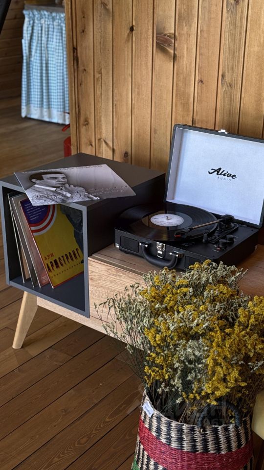 - Для досуга: проектор, виниловый проигрыватель, настольные игры.